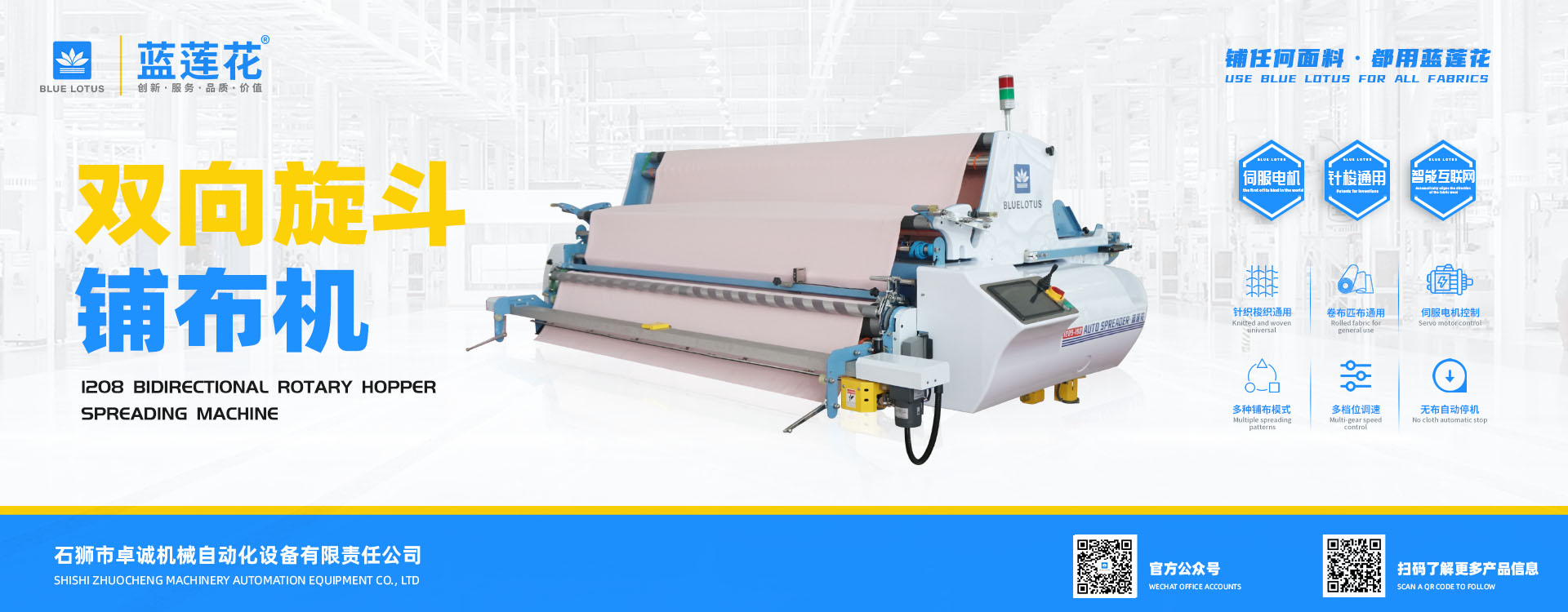 我司結(jié)合市場自主研發(fā)的藍蓮花品牌拉布機擁有多項自主專利技術(shù),機器以小巧多功能易操作低維護為特點,為業(yè)界提供性價比機型; 藍蓮花品牌拉布機以實用質(zhì)優(yōu)為特點自投產(chǎn)以來便在國內(nèi)贏得市場廣泛認可。